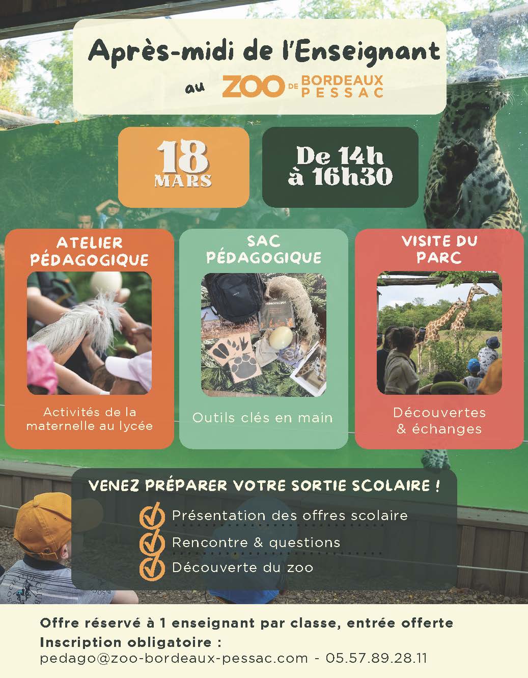 Invitation aux Après-Midis Pédagogiques au Zoo de Bordeaux Pessac